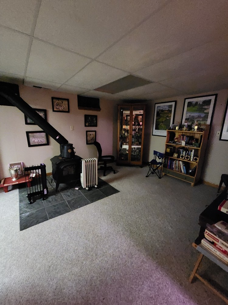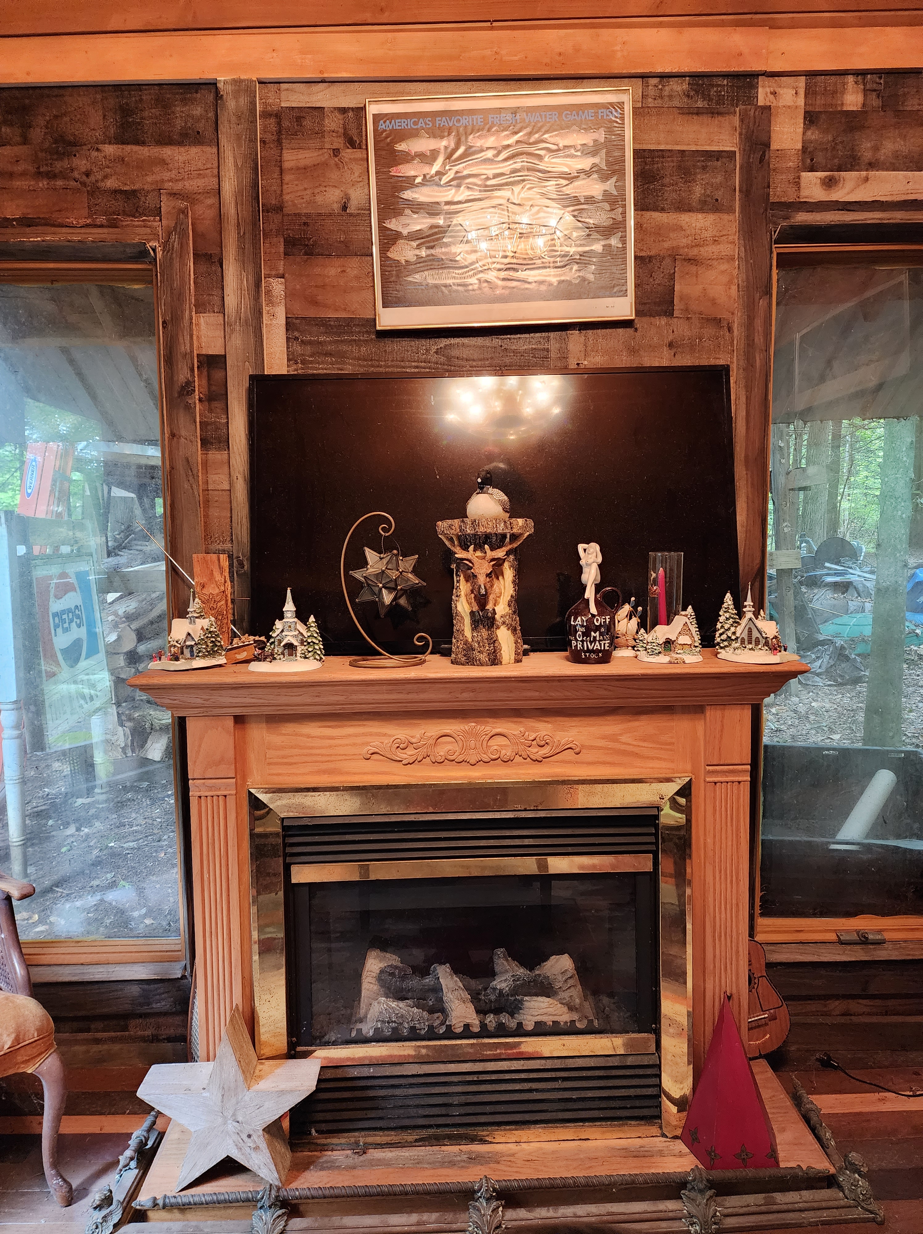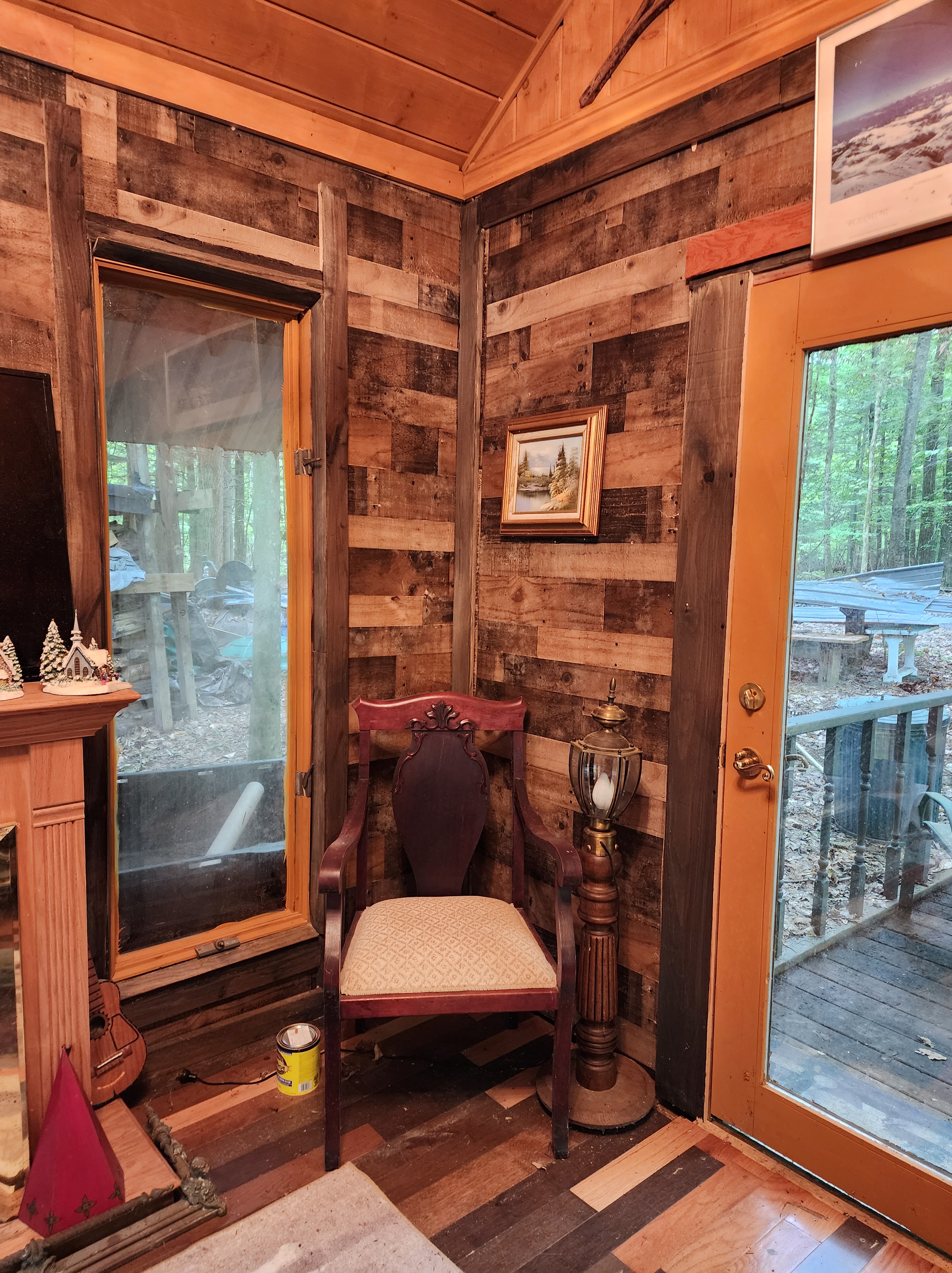 This little cabin is cozy and settled in the back woods of the property. The cabin has electricity, heat in the form of an electric fireplace, and a cute back porch that looks into the woods. The cabin is far enough from the house for privacy, but close enough to use the bathroom and kitchen, provided in the main home on the property.