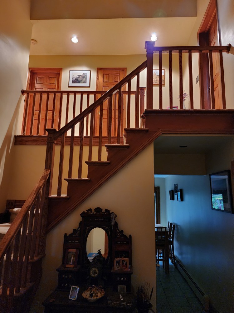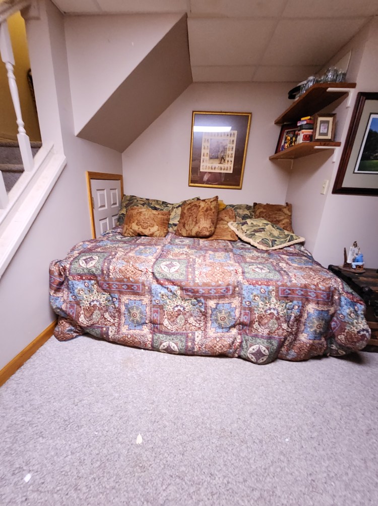 Within the main home, upstairs bedrooms, across the hall from each other. The bathroom and shower/bath is next to the bedrooms, with access to the kitchen on the main floor of the home.